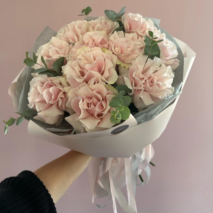 Французская роза – 11 шт. Эвкалипт – 3 шт. Упаковка дизайнерская – 1 шт.