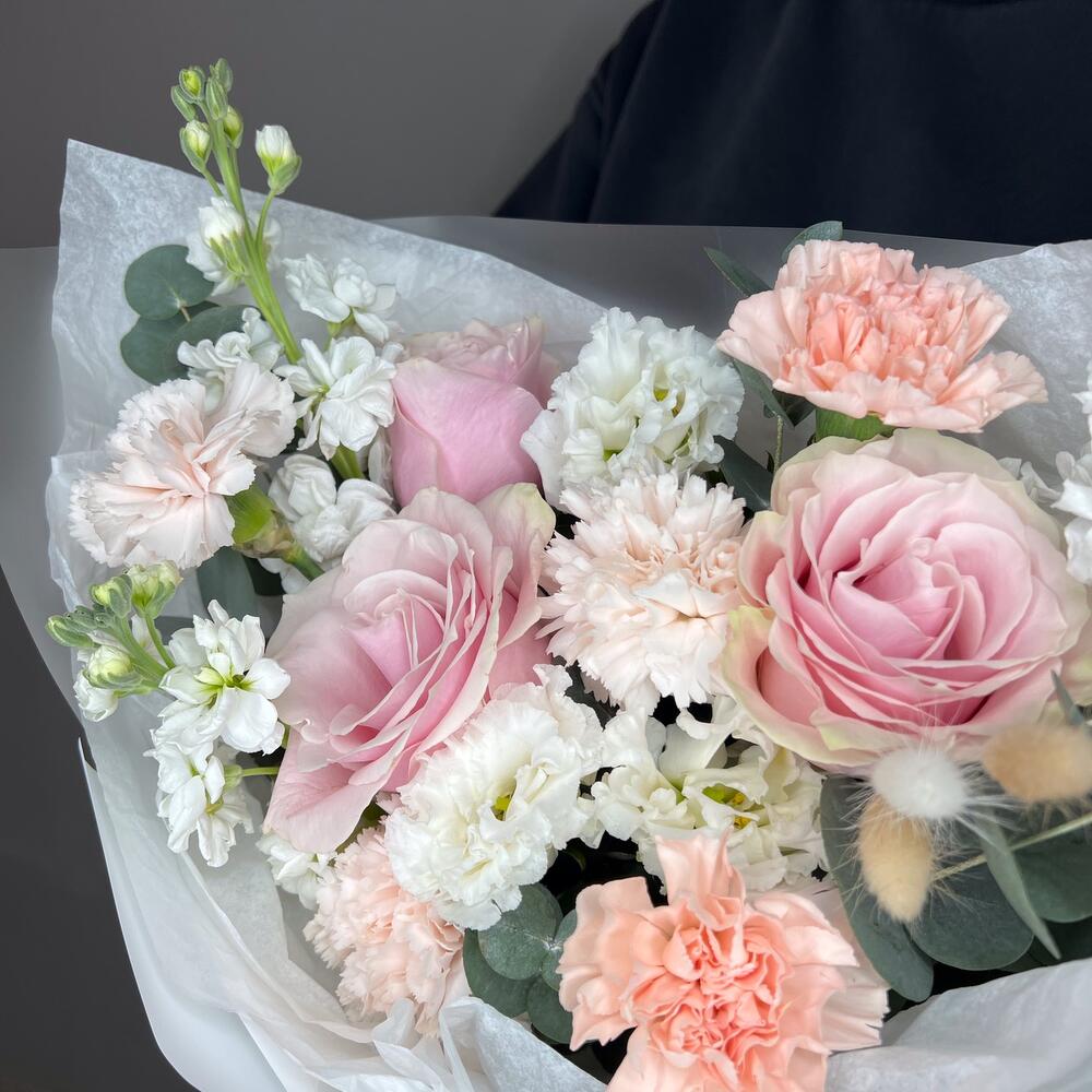 Категории: Гвоздики, Лизиантусы, Розы