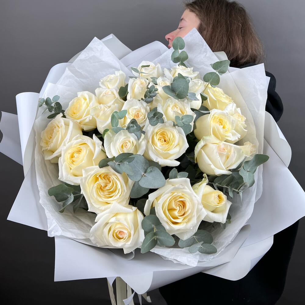 кендллайт роза – 21 шт.Эвкалипт – 5 шт.Дизайнерская упаковка – 1 шт.