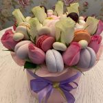 макарон (пирожное) – 6 шт.орехи в глазури – 100 гр.розы белые россия – 9 шт.розы розовые – 9 шт.зефир цветной – 200 гр.мешмеллоу – 100 гр.