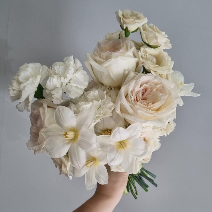 Тюльпан – 4 шт.Диантус – 6 шт.Роза кустовая – 3 шт.Пионовидная роза – 4 шт.ваза транспортировочная – 1 шт.сумка переноска – 1 шт.