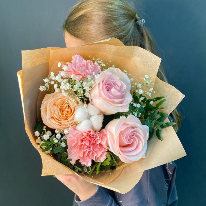 Букет с хлопком и гипсофилой
