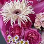 гербера махровая – 1 шт.Диантус – 2 шт.Роза кустовая пионовидная – 1 шт.Матрикария – 2 шт.Эвкалипт – 2 шт.Упаковка дизайнерская – 1 шт.