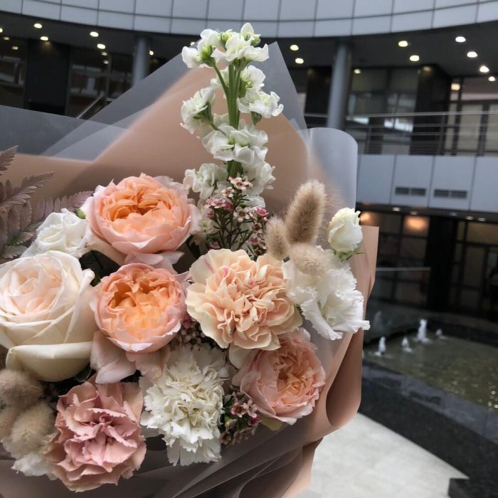 Категорий: Гвоздики, Лизиантусы, Пионовидные розы, Розы, Сухоцвет