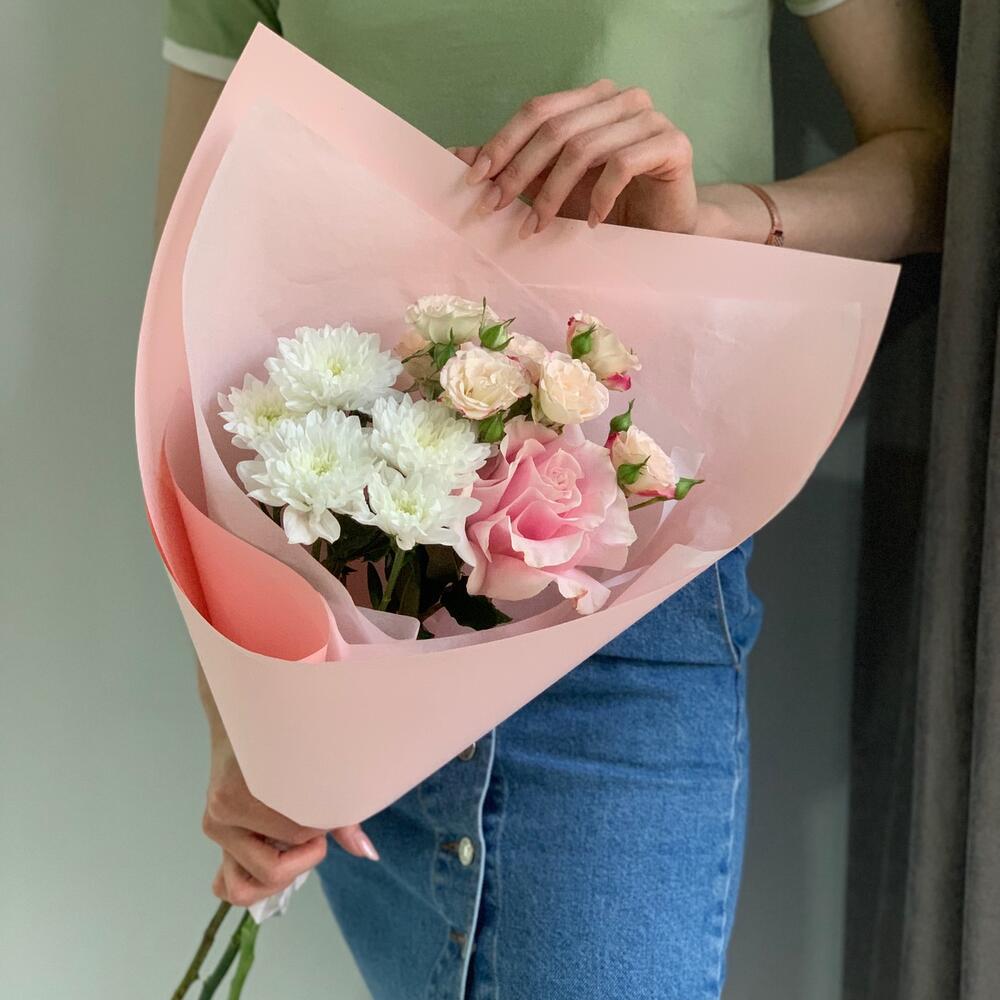 Альстромерии, Гвоздики, Кустовые розы, Лизиантусы, Розы, Хризантемы