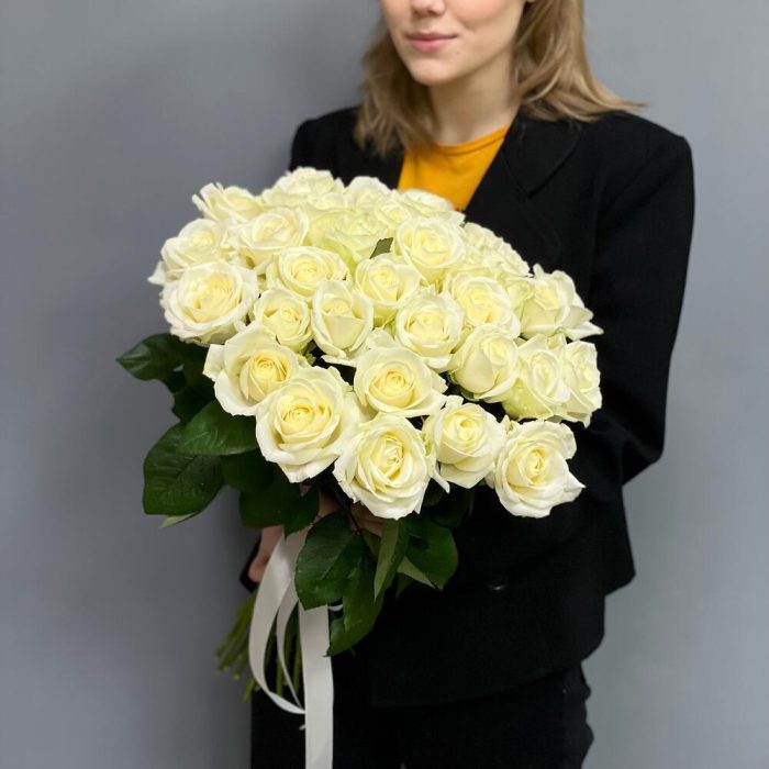 Лента атласная – 1 шт.Роза белая – 35 шт.