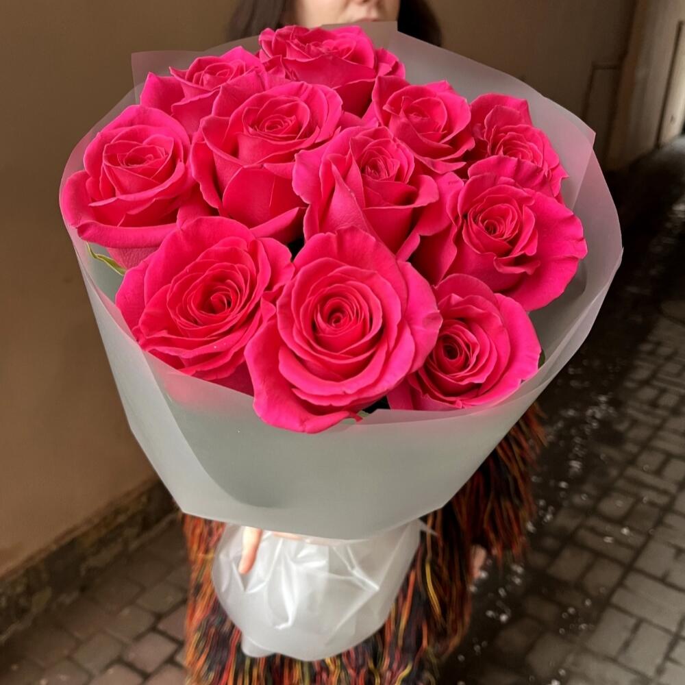 Июль: 11 малиновых роз сорта Пинк Флойд