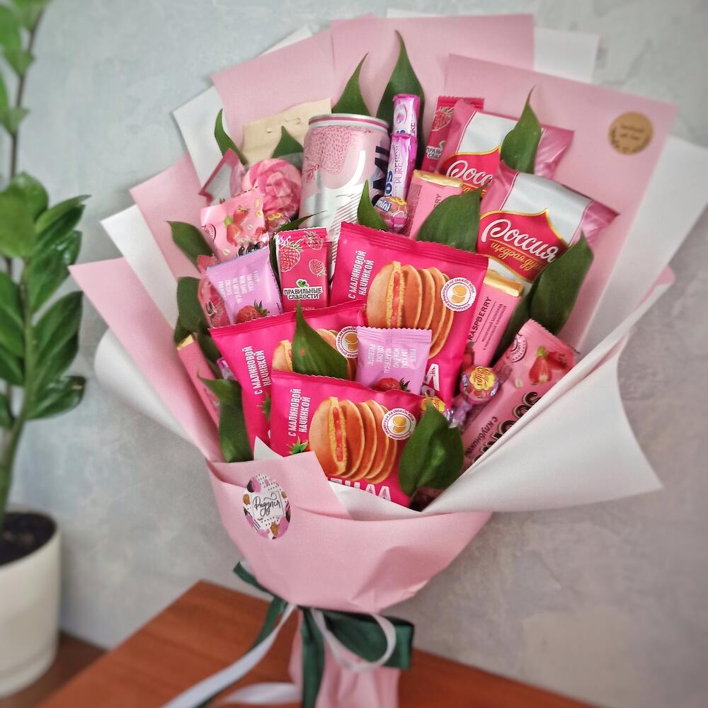 Леденец на палочке – 1 шт.рускус(зелень) – 22 шт.mentos pure – 3 шт.боржоми земляника – 1 шт.yota шарики с малиной – 1 шт.шоколад россия клубника и роза – 3 шт.basker wheels pancake малина – 3 шт.батончики so crispy клубника – 3 шт.батончики musler клубника в йогурте – 3 шт.малиновые пастилки – 3 шт.chupa chups mini клубника – 7 шт.шоколад ozera малина – 3 шт.