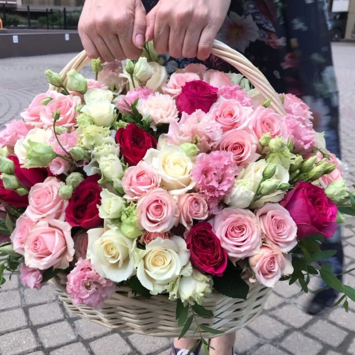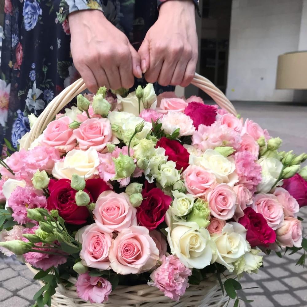 Метки: от 5000 руб, цветы в корзине