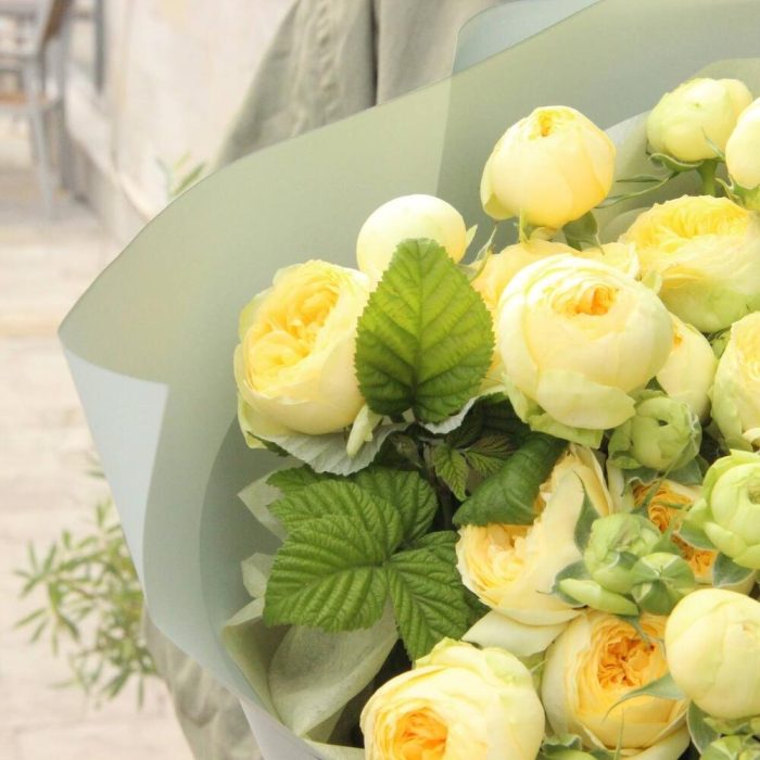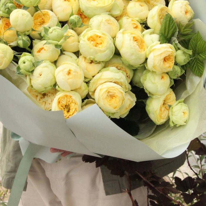 Лимонный щербет - Букет с пионами и пионовидными розами