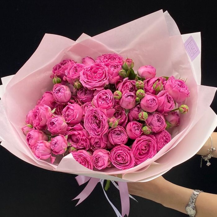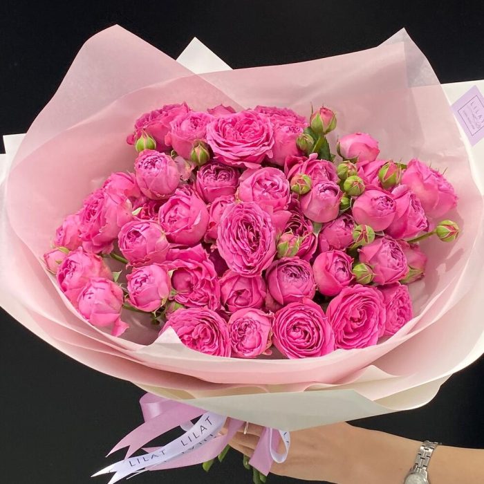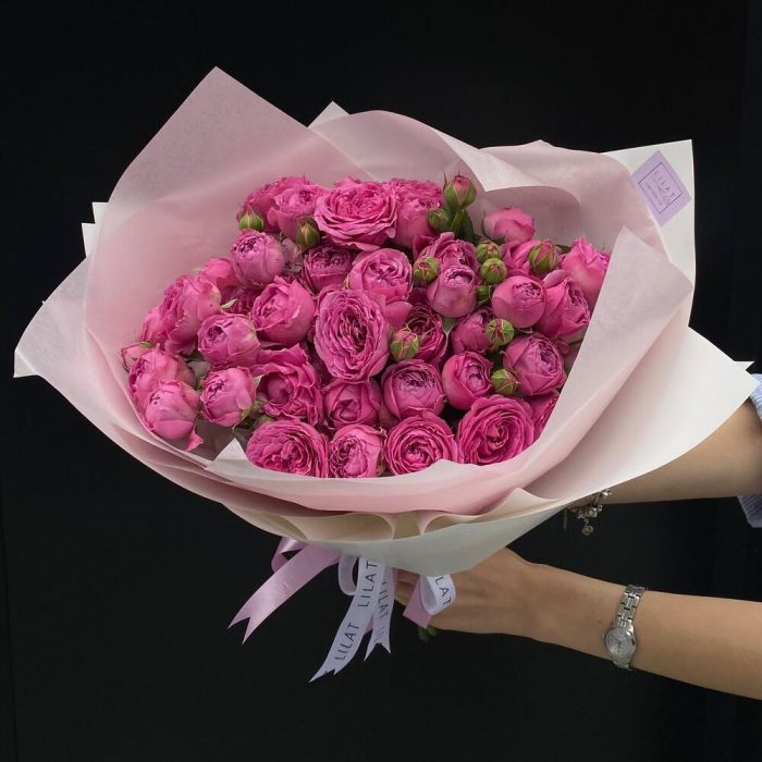 Упаковка дизайнерская – 2 шт. Открыточка с вашими пожеланиями – 1 шт. Misty Bubbles пионовидная роза – 11 шт.