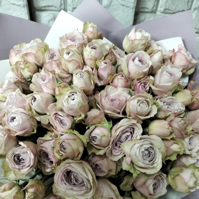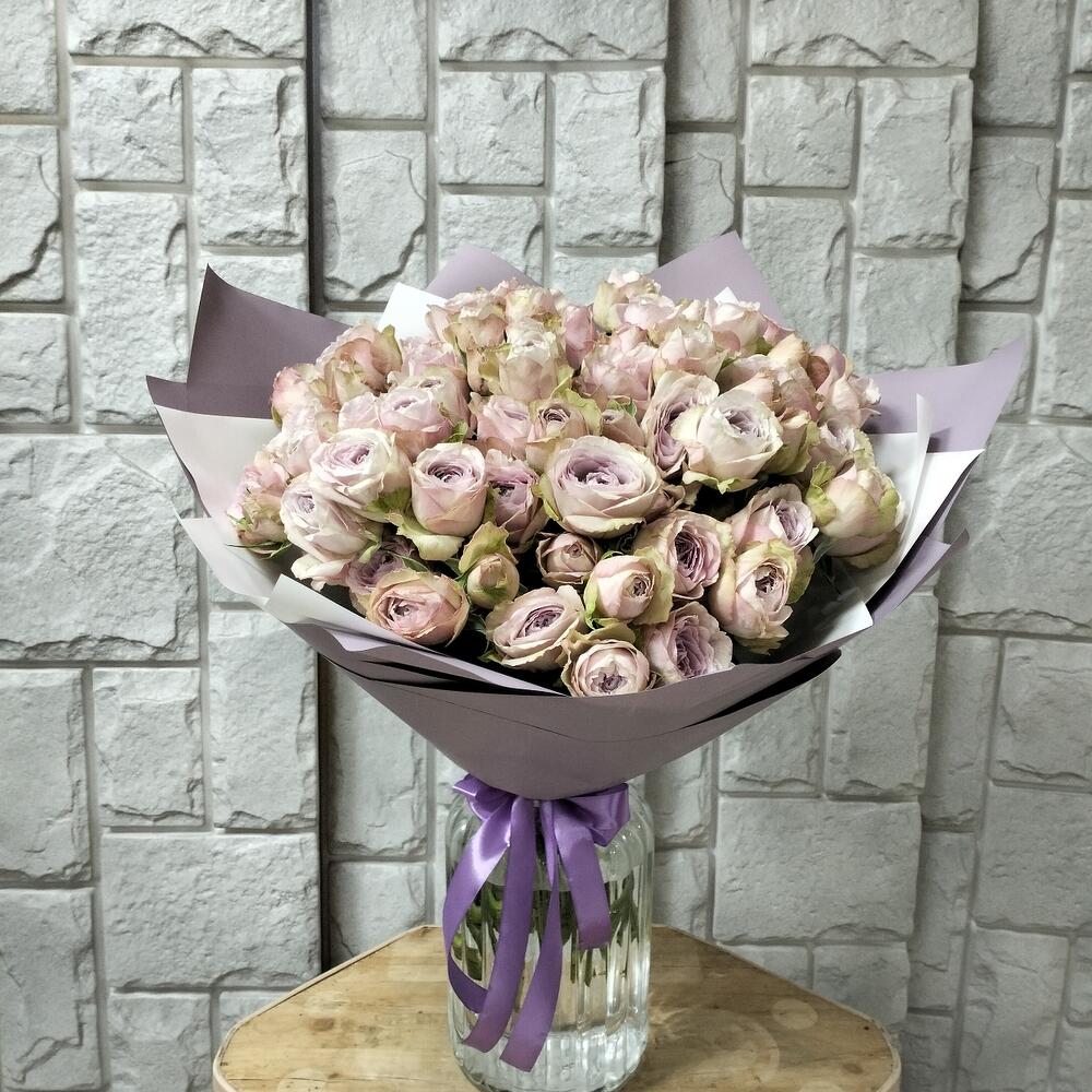 Лента атласная – 1 шт.роза кустовая пионовидная 50 см – 15 шт.урпковка дизайнерская – 2 шт.