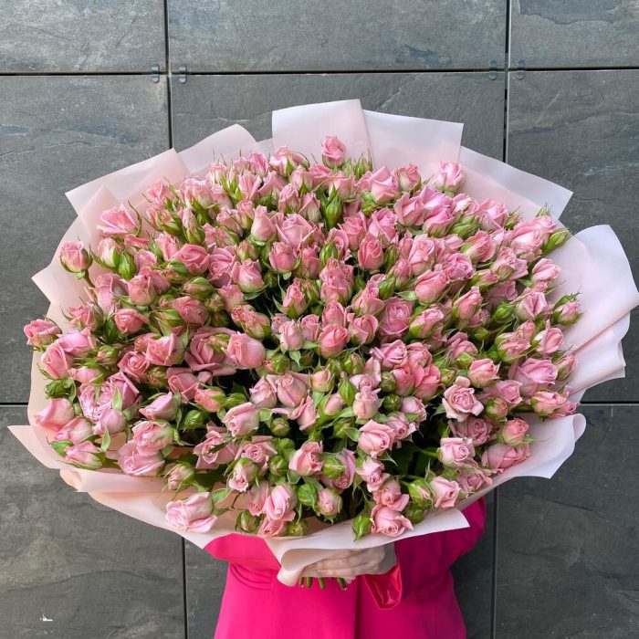 Монобукет из 27 розовых роз кустовых