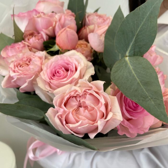 Нежный букет с розами и эвкалиптом