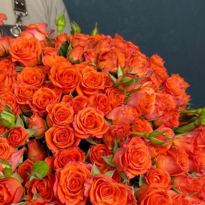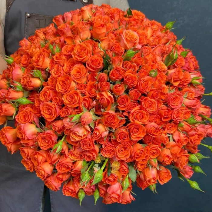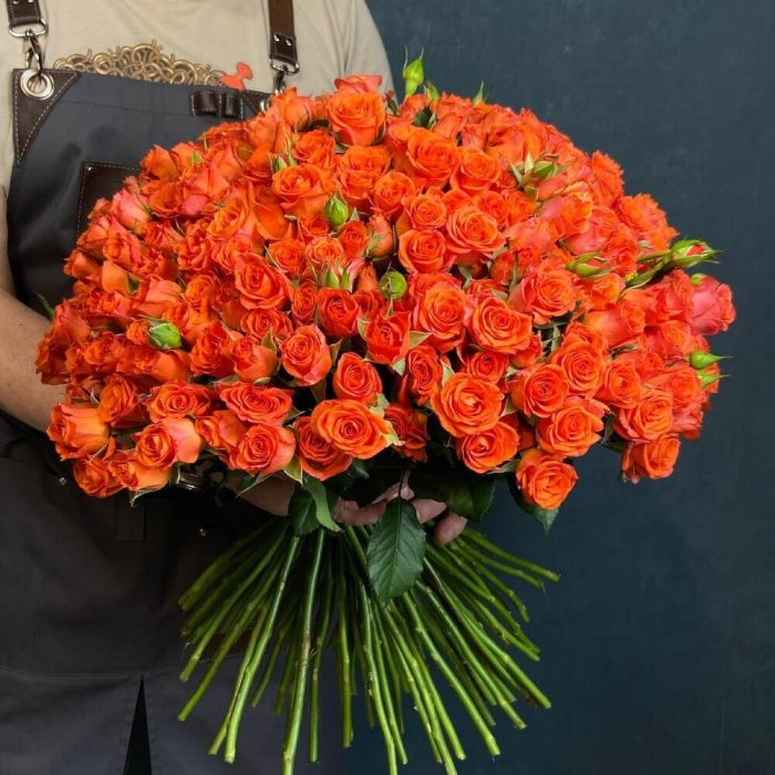 оранжевая спрей роза – 101 шт. Открытка – 1 шт.