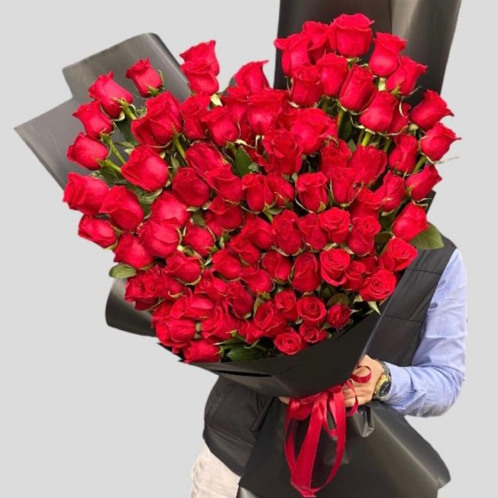 Метки: 101 роза, от 5000 руб, Роза 90 см