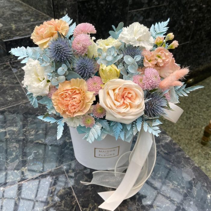 “В твоих глазах”: нежная шляпная коробка с французскими розами
