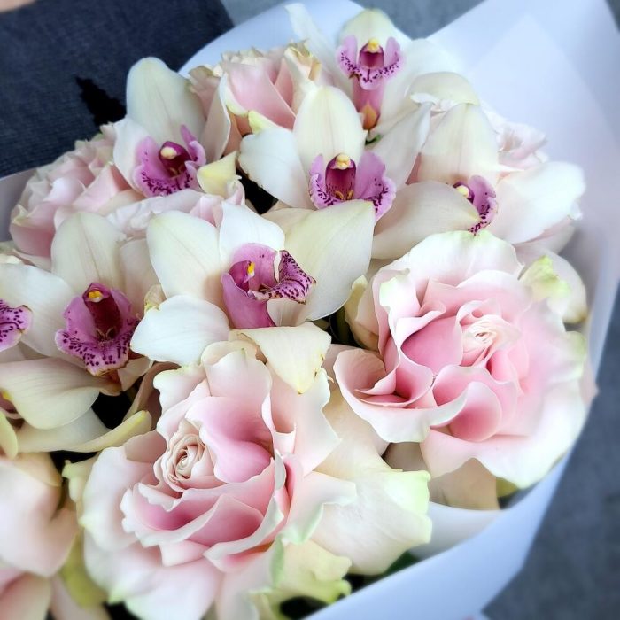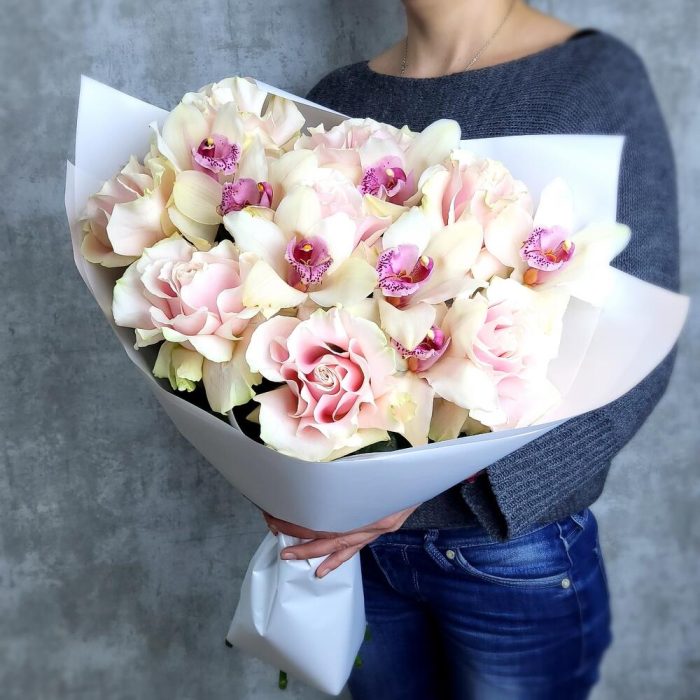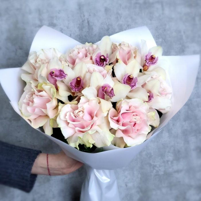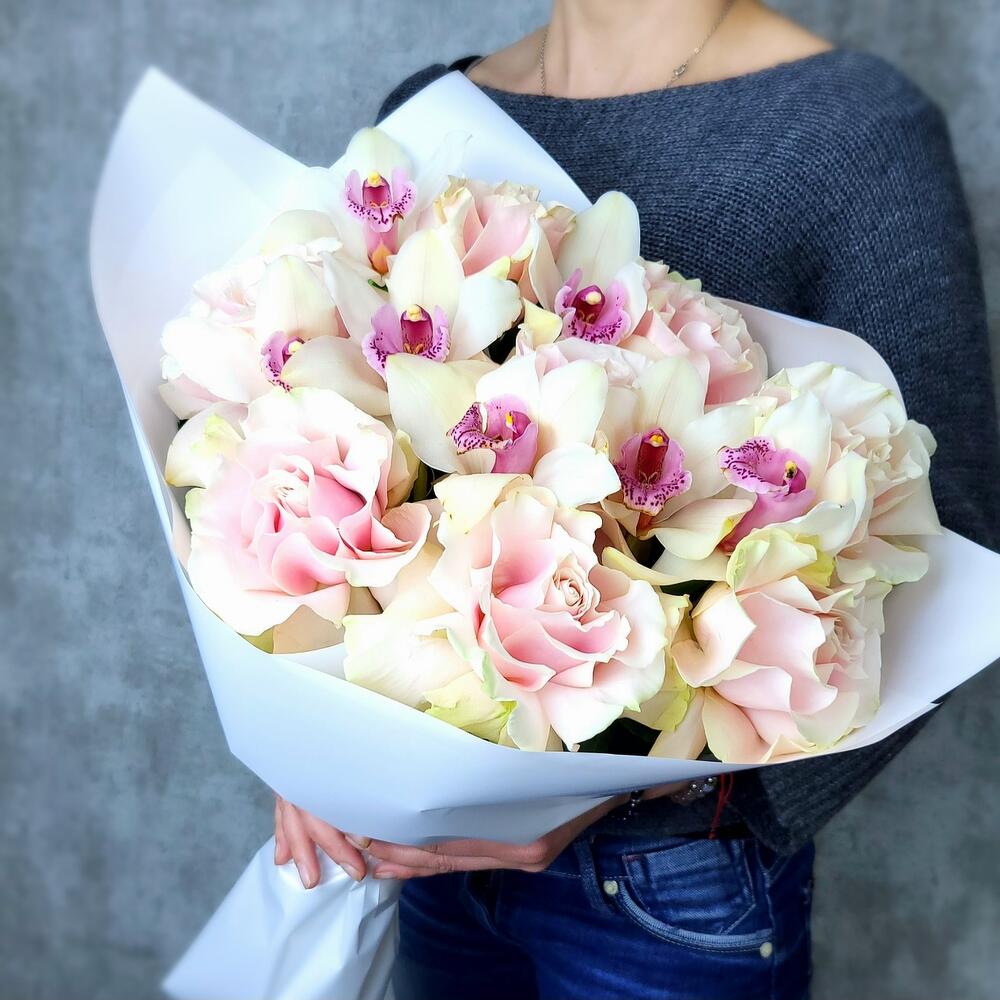 Корзина с розами и орхидеями "Мисс Элегантность"