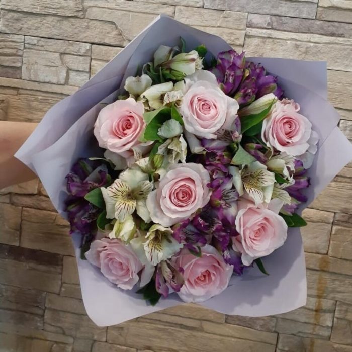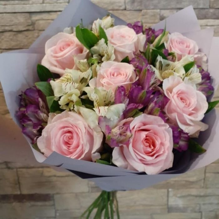 Букет с розами и альстромерией