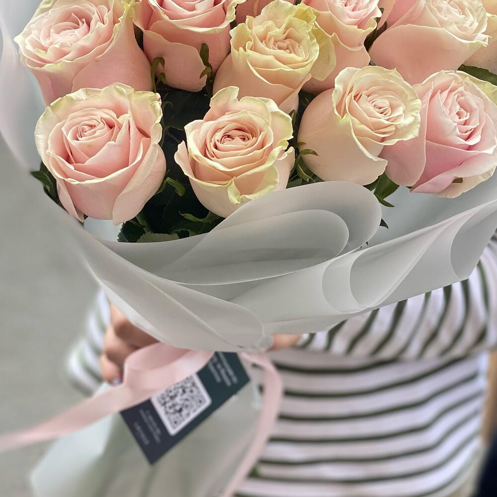Букет из нежно-розовых пионовидных роз не оставит никого равнодушным.Пышное раскрытие,необычные лепестки и цвет роз сорта Пинк мондиаль приводят в восторг.Каждый наш букет собран с заботой и большой любовью. Ко всем букетам мы прикрепляем памятку по уходу и коизв(подкормка для срезанных цветов),чтобы цветы радовали получателя как можно дольше.Радуйте себя и своих близких