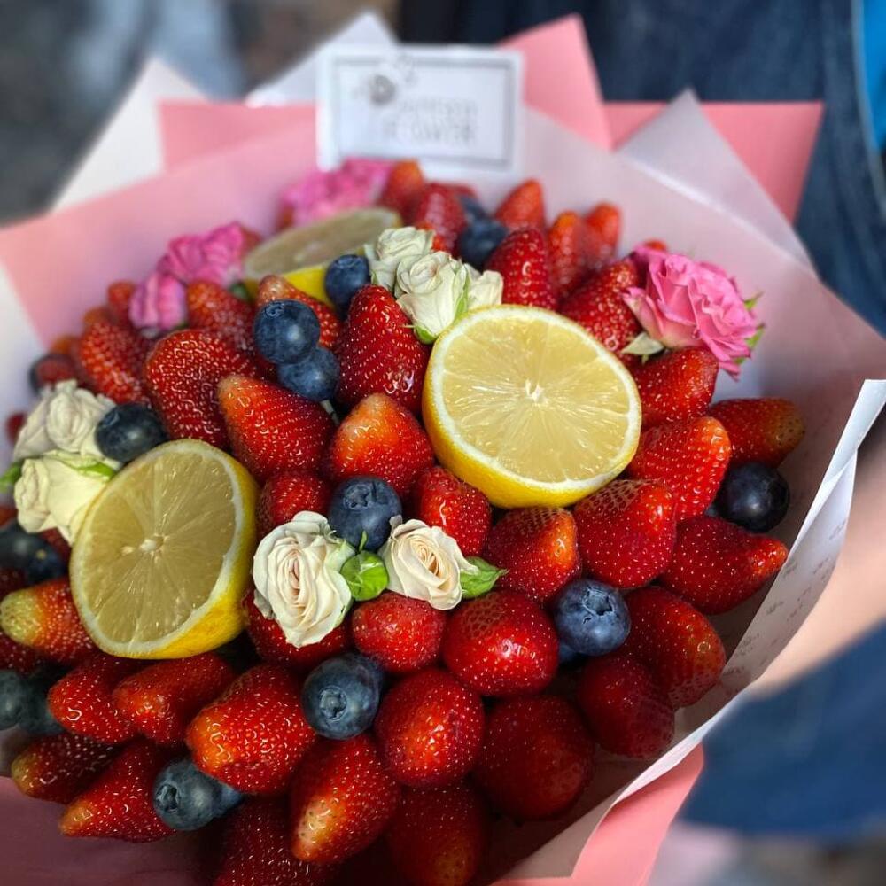 Съедобный фруктовый из клубники, голубики, лимона и кустовых роз “Витаминка”