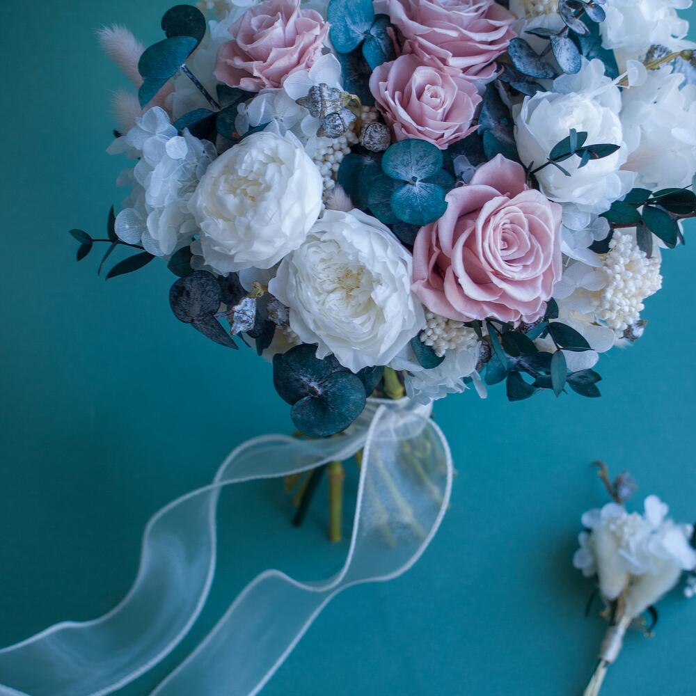 Свадебный букет со стабилизированными розовыми розами
