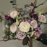 Ранункулюс – 3 шт.Клематис – 2 шт.Тубероза – 2 шт.Маттиола – 3 шт.Астранция – 2 шт.Роза сортовая – 5 шт.Сантини – 5 шт.Ветки – 2 шт.Эвкалипт – 5 шт.