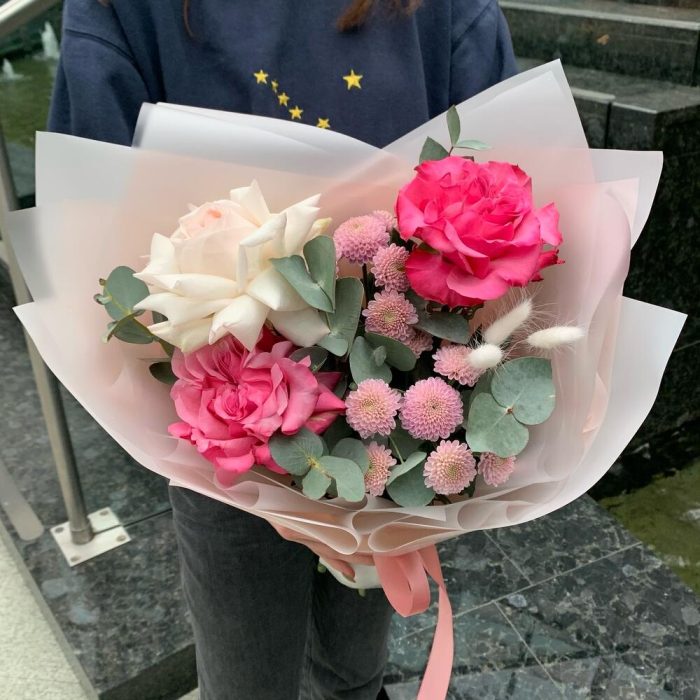 Утро на Неве – Сборный букет из роз и хризантеме