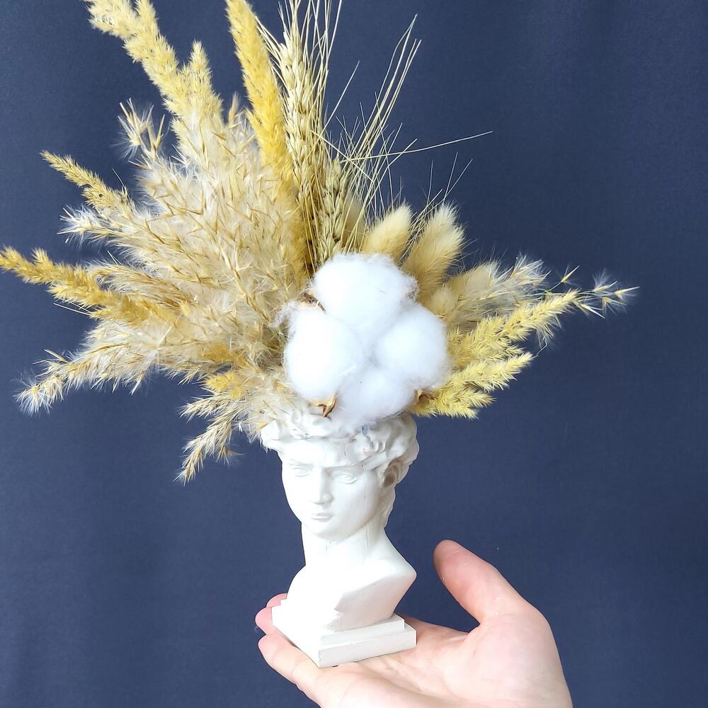 Хлопок – 1 шт.Лагурус – 7 шт.Оазис флористический – 1 шт.Тритикале – 5 шт.кортаделия – 1 шт.голова давида – 1 шт.