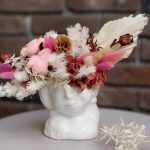 Хлопок натуральный – 2 шт.Скабиоза – 3 шт.Лагурус (сухоцвет) – 15 шт.аспарагус стабилизированный – 4 шт.гортензия стабилизированная – 1 шт.пальма сухоцвет – 1 шт.Кашпо керамическое – 1 шт.