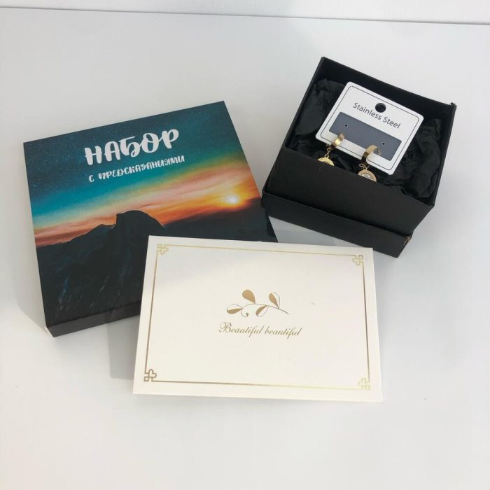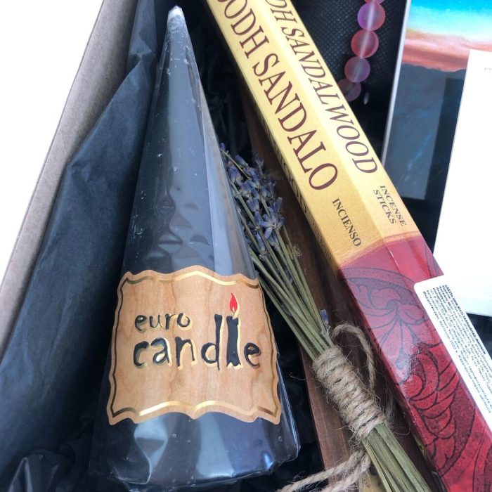 Лаванда – 1 шт.Тишью – 1 шт.Коробка – 1 шт.Открытка – 1 шт.благовония – 1 шт.браслет – 1 шт.серьги – 1 шт.подставка для благовоний – 1 шт.набор с шоколадом 9 шт – 1 шт.