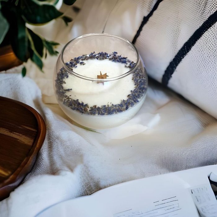 соль для ванной лаванда – 1 шт.аромасвеча ручной работы с эфирным маслом лаванды – 200 млмыло с эфирным маслом лаванды – 1 шт.