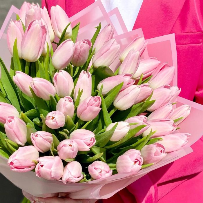 Тюльпан – 51 шт.Лента атласная – 1 шт.Упаковка дизайнерская – 3 шт.